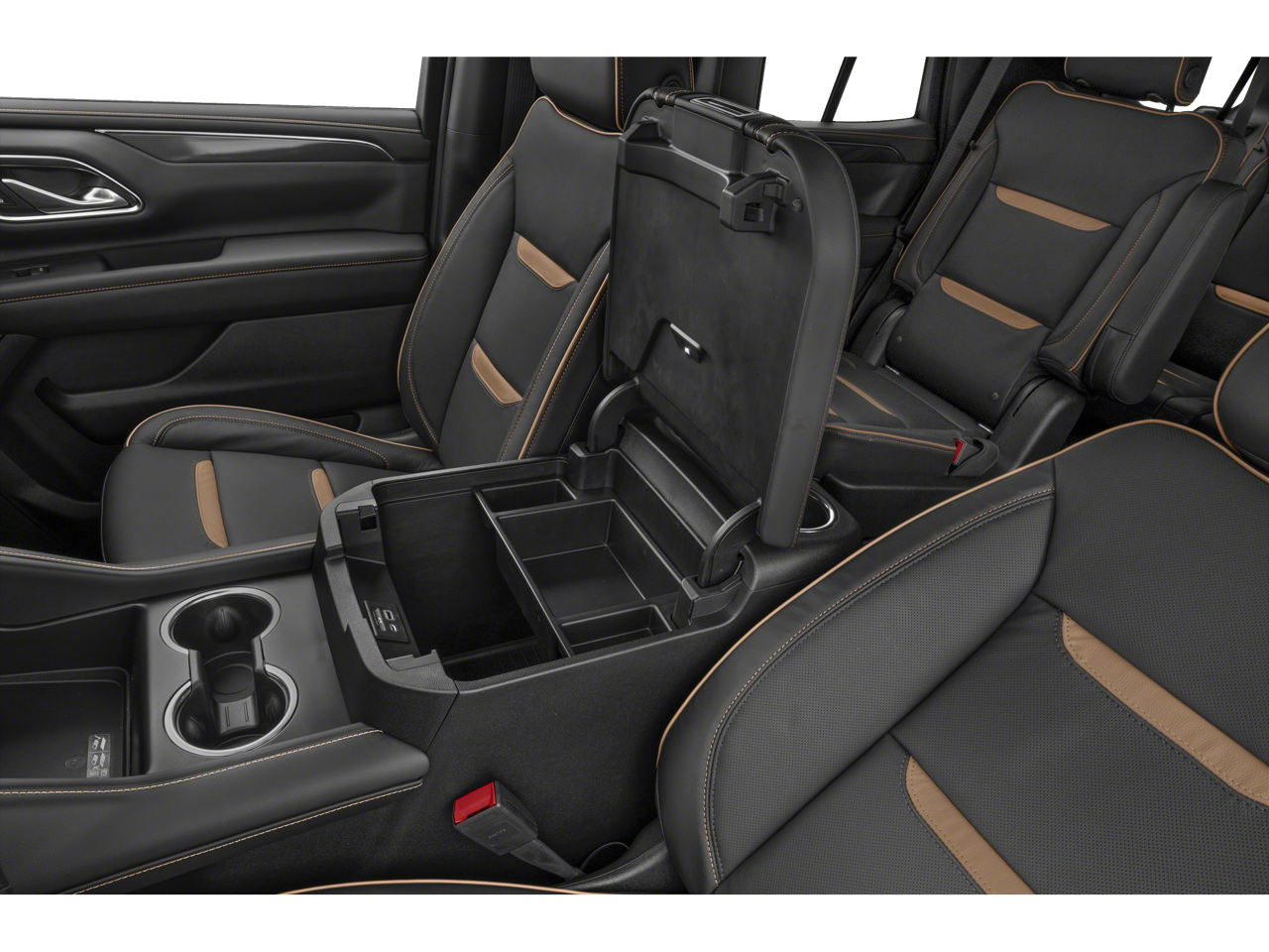 - Power-sliding center console with secure storage and cup holders for the second row